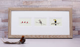 We've taken three of our favourite exotic bird gift/mini cards and framed them in oak. You can choose any 3 gift cards in a 'landscape', rather than portrait design and we can double mount them for you.They are all hand finished with real sheep's wool and look absolutely amazing when framed.