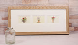 We've taken three of our favourite flower bird gift/mini cards and framed them in oak. You can choose any 3 gift cards in a 'landscape', rather than portrait design and we can double mount them for you.They are all hand finished with real sheep's wool and look absolutely amazing when framed.