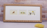 We've taken three of our favourite garden bird gift/mini cards and framed them in oak. You can choose any 3 gift cards in a 'landscape', rather than portrait design and we can double mount them for you. They are all hand finished with real sheep's wool and look absolutely amazing when framed.