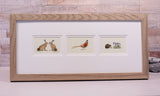 We've taken three of our favourite wildlife gift/mini cards and framed them in oak. You can choose any 3 gift cards in a 'landscape', rather than portrait design and we can double mount them for you. They are all hand finished with real sheep's wool and look absolutely amazing when framed.