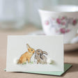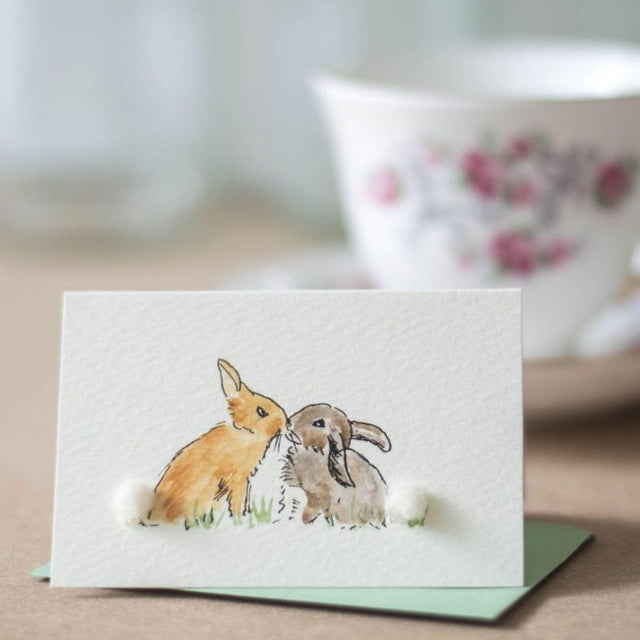 This gorgeous mini card features 2 rabbits rubbing noses. Their tails are created by a ball of hand applied sheep's wool to create a very special 3d finish.