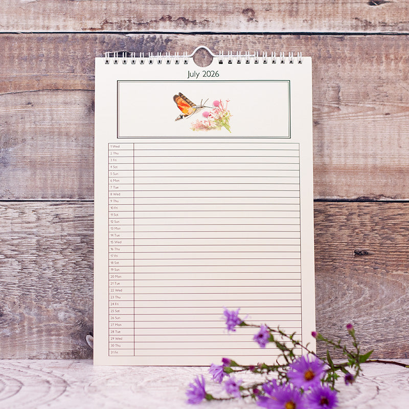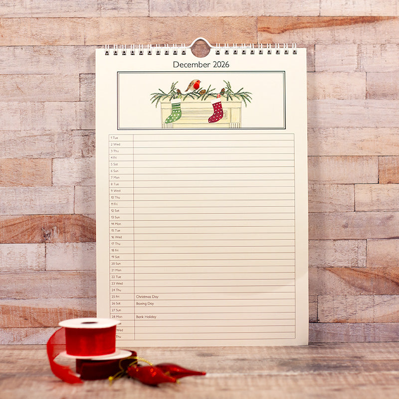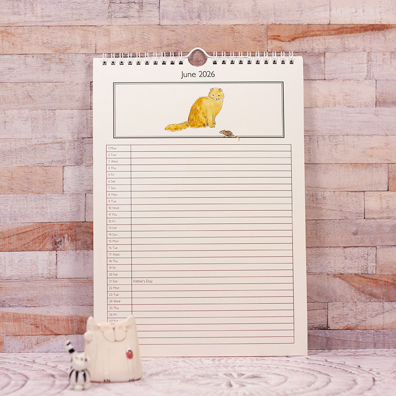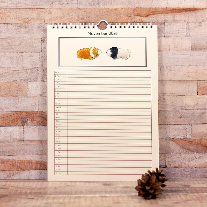 A4 (29.7 cms x 21 cms) in size, with a white wire binding and hanger along the top, this is a handy size for scribbling all those engagements. The layout is a single line for each day of the month, with the woolly animal at the top of the page. There will be a relatively small number so please do order your copy sooner rather than later to avoid disappointment.