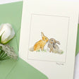 This very popular design showing 2 rabbits rubbing noses is very sweet and popular with rabbit lovers. It makes a great Easter card.